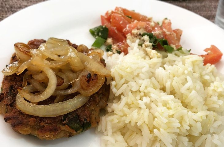 Arroz, feijão, batata e farrofa